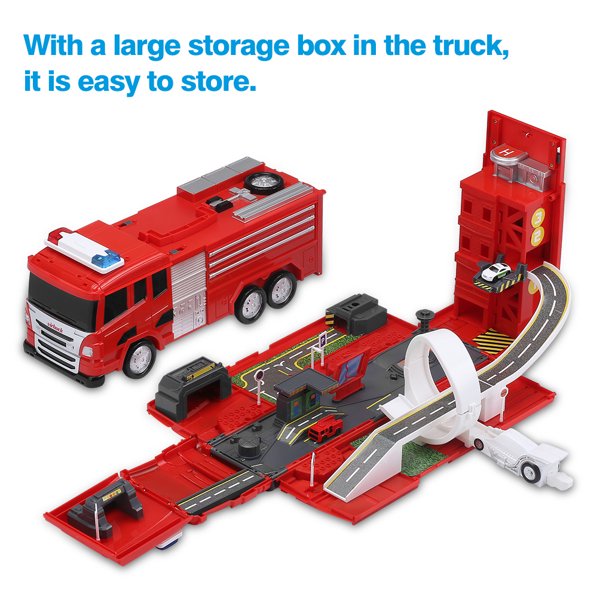 Virhuck Transformed Fire Truck Multi Functional Parking Diy Building Car Vehicle City Track Sets Toys For Boys Kids Walmart Com